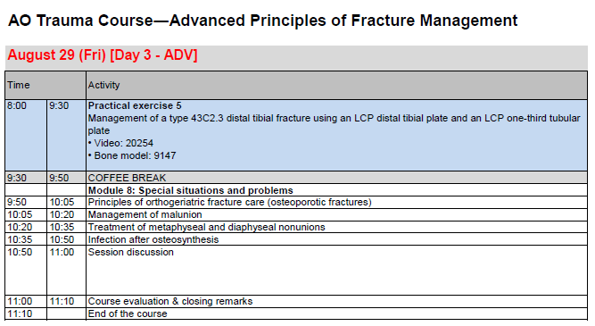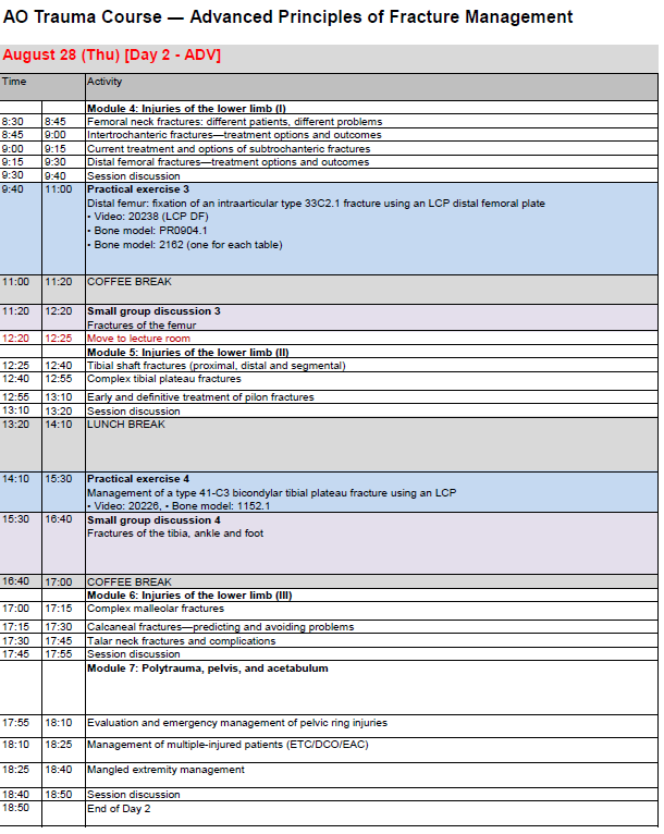 AO trauma course는 정형외과 전문의(또는 전공의)를 대상으로 골절에 대한 교육을 하는 과정입니다.
