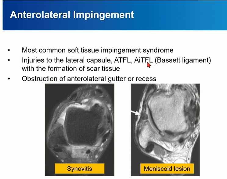 주로, ATFL 및 ATIFL (특히, Bassett ligament)등의 injury로 인해 발생한 scar tissue가 원인이 되는 경우가 많다.