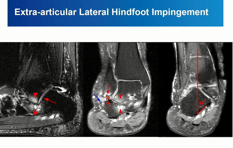 hindfoot valgus가 있는 실제 환자에서 impingement를 보이고 있는 MRI 영상.