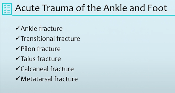Acute Trauma of ankle and foot의 영상에 대해서 정리했습니다.