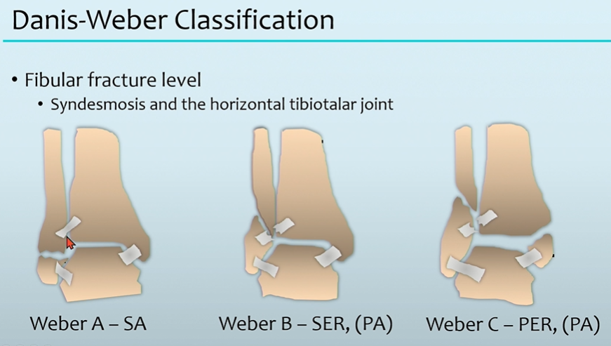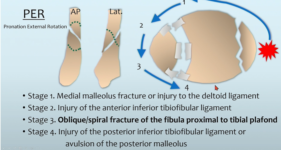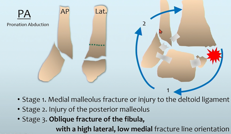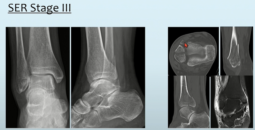 - Stage3: high fibular fracture (굉장히 특징적입니다. 높이는 Danis-Weber classification상 C)