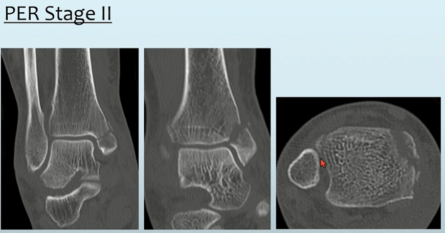 - Stage1: distal fibula가 trasverse fracture의 양상을 보임