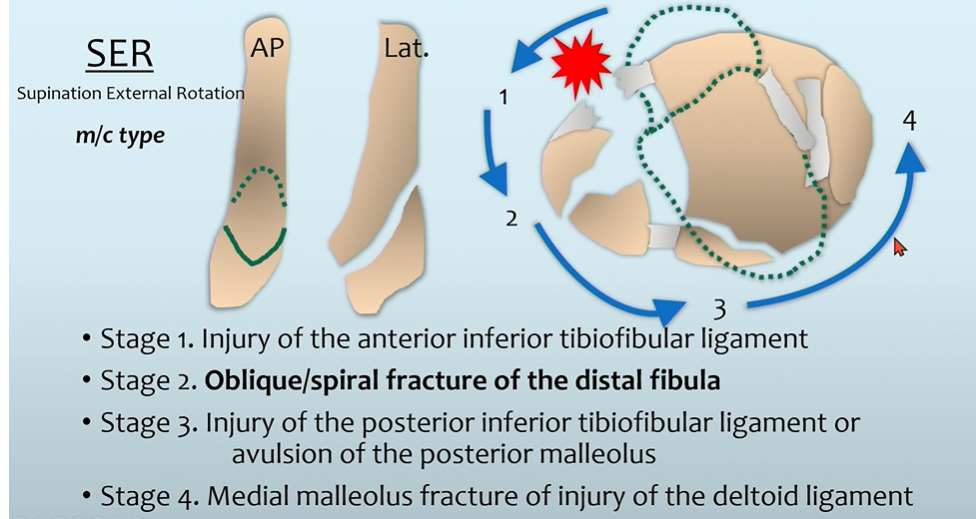 가장 흔한 ankle 골절인 SER type입니다. 자세히 설명해보도록 하겠습니다.