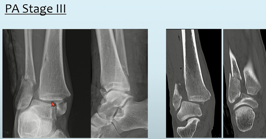 - Stage 3: Distal fibula 골절 (외측은 높고, 내측은 낮은 양상) -> 그림을 통해서 이해!
