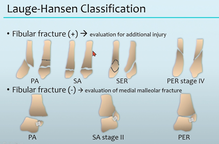 2가지의 문자를 조합해서 발목 골절의 type를 정하는 것이 Lauge-Hansen classification입니다.