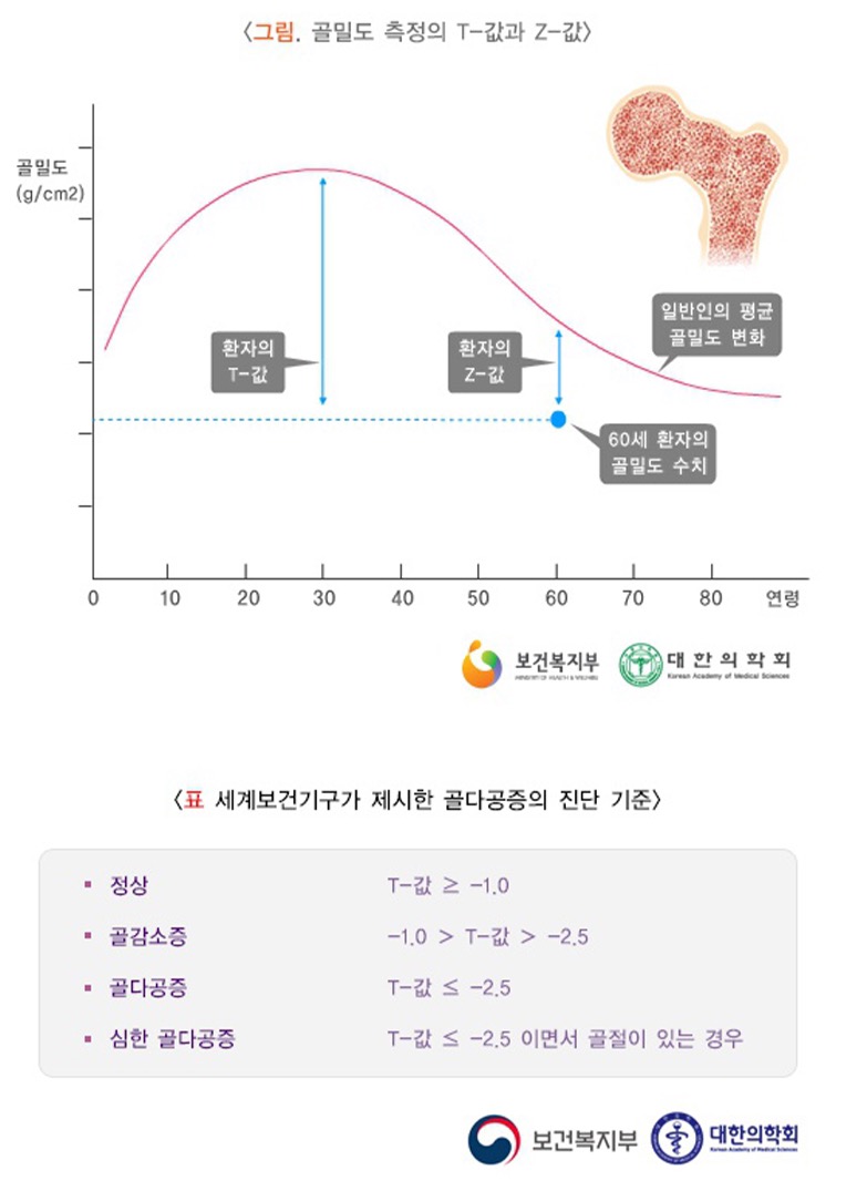 반대로 0보다 작은 음의 값이 나오면, 뼈가 상대적으로 약하다는 의미입니다.
