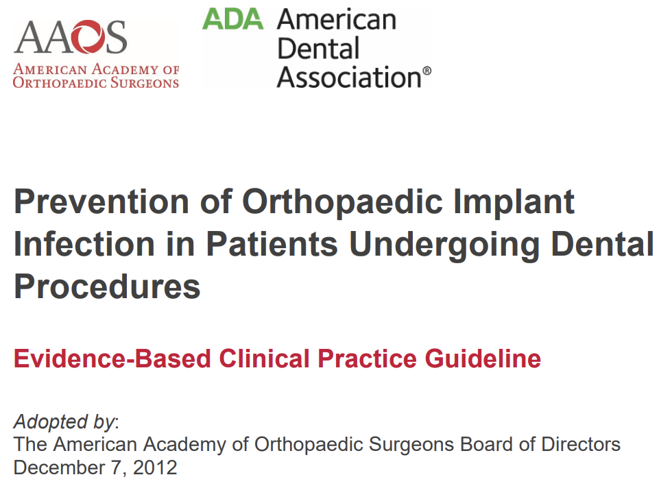3. In the absence of reliable evidence linking poor oral health to prosthetic joint infection, it is the opinion of the work group that patients with prosthetic joint implants or other orthopaedic implants maintain appropriate oral hygiene.