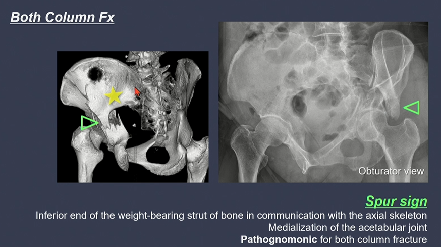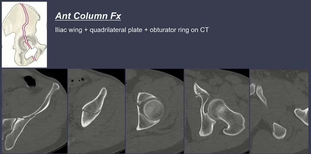 Column fracture는 Coronal 로 골절선이 위치. ( bone을 앞/뒤로 나누는 선)