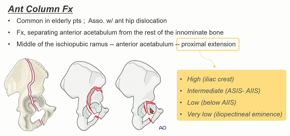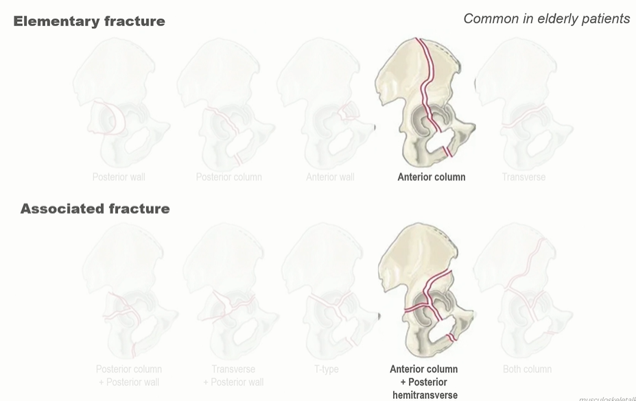 Anterior column을 포함하는 2개의 type이 노년 층에 흔하다.