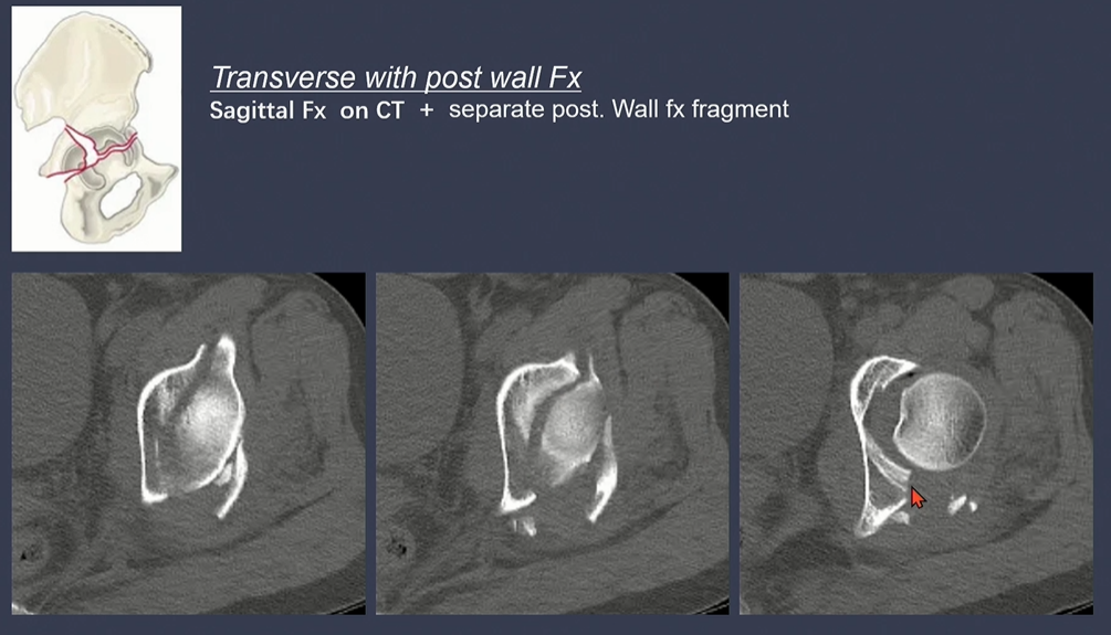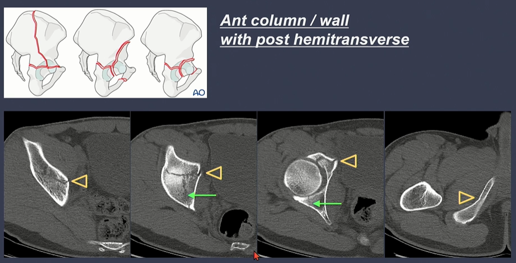 노란색 화살표: anterior column + 녹색 화살표 posterior hemitransverse