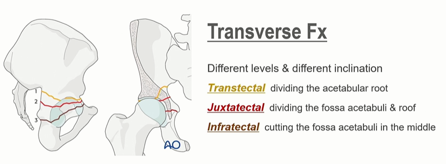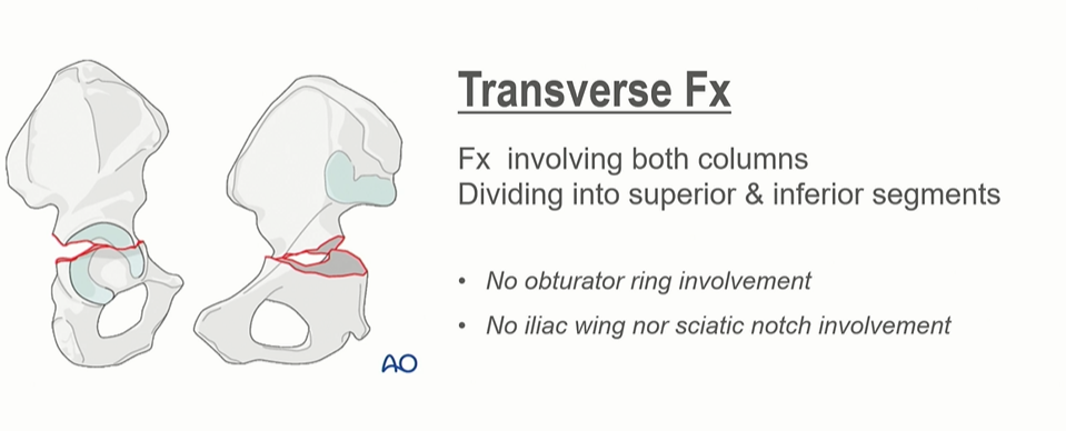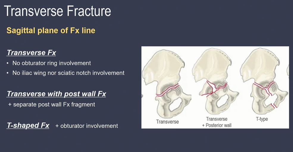 Transverse fracture는 Sigittal로 골절선이 위치 (bone을 위/아래로 나누는 선)