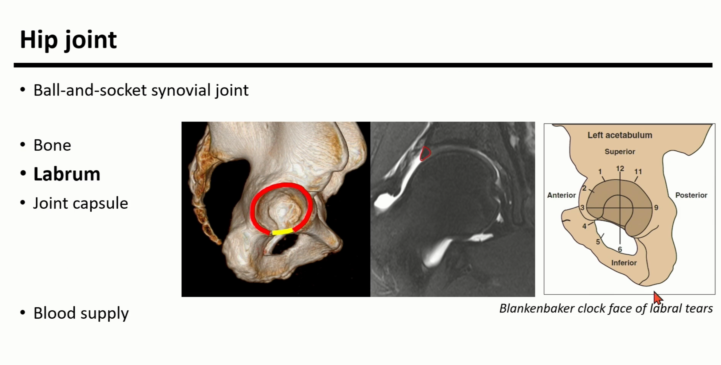 Labrum은 acetabular rim을 따라서 붙어있는 fibrocartileaginous structure(빨간색으로 표시됨)