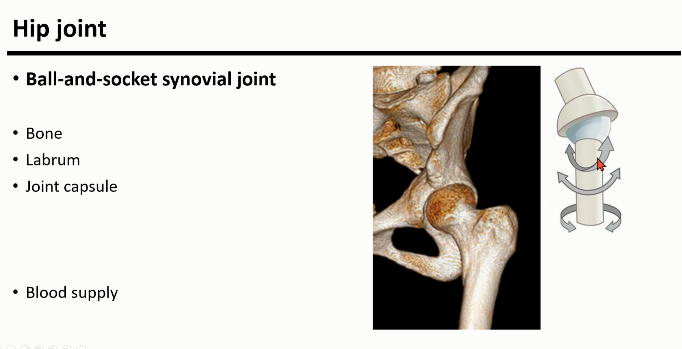 hip joint는 ball and socket joint로, 다양한 움직임을 가능하게 하는 관절이다
