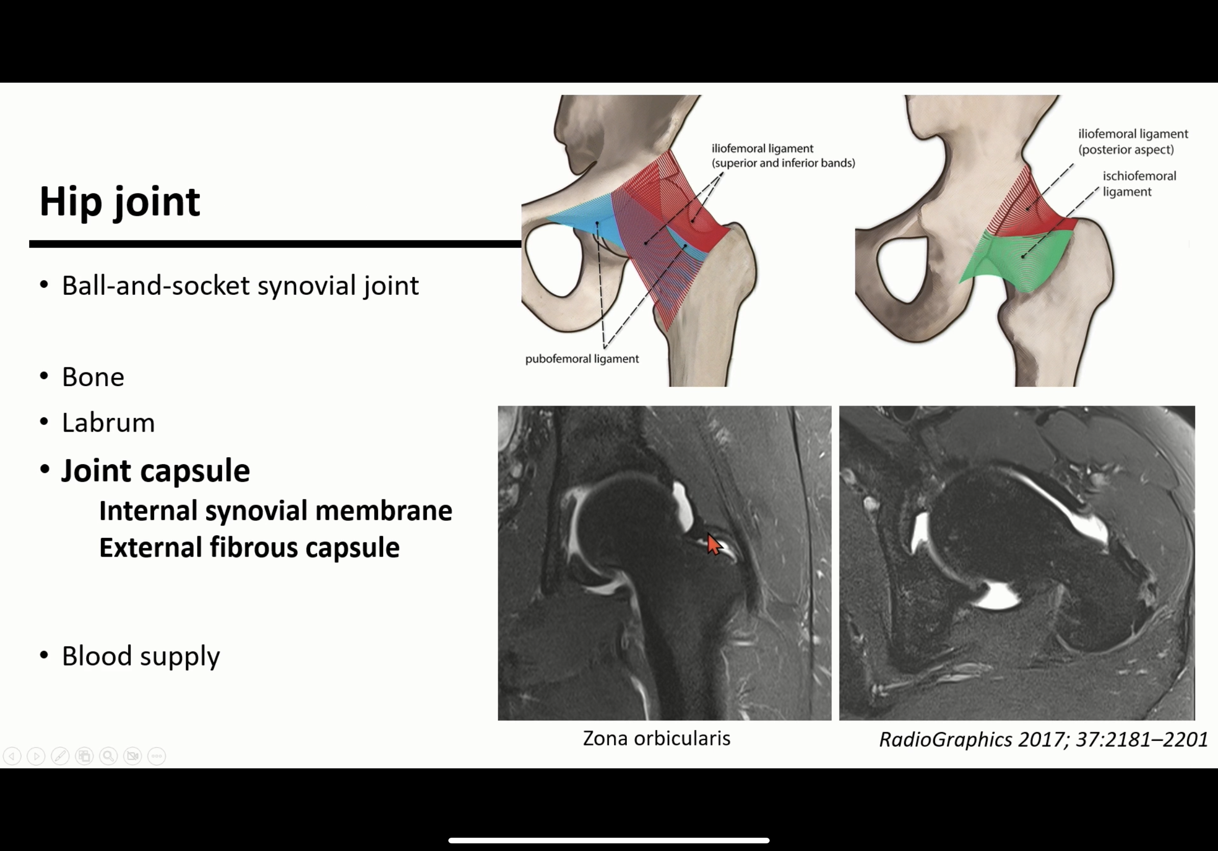 좌측 사진의 femur neck 주변으로 concentric한 구조물을 zona orbicularis라고 함.