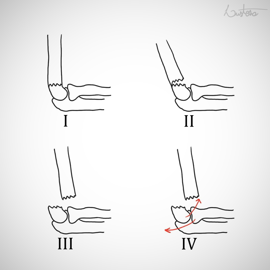 앞에서 4가지의 단계로 과상부 골절에 대해서 구분한다고 말씀드렸습니다.