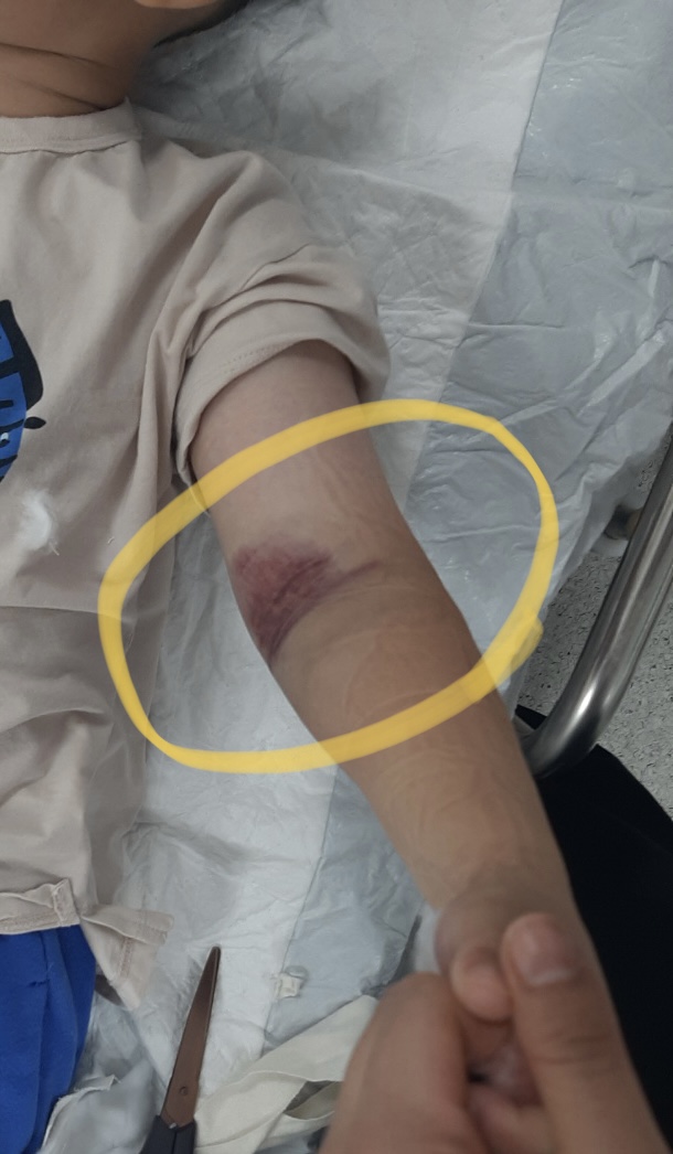 아이가 놀다가 넘어진 상황에서 팔꿈치 통증을 호소하고, 멍이 들거나 물집이 잡히면 응급실로 가는 것이 현명합니다.
