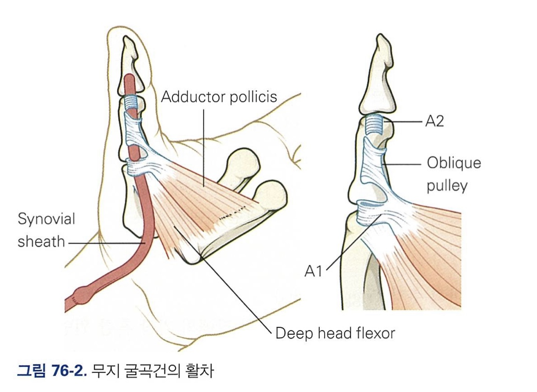 다른 손가락과 달리, 엄지의 경우에는 A1,A2, 사선 활차(oblique)로 구성되어 있습니다.